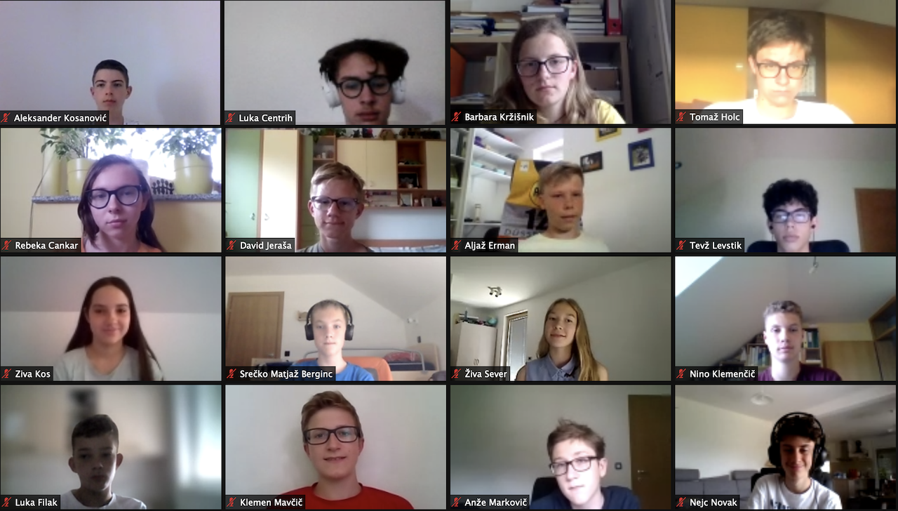 Za arhive smo se ovekovečili tudi s fotografiranjem, za kar je poskrbel priložnostni hišni fotograf Jan Šuntajs. Na sliki, kjer jih je več in so mlajši, so učenci, na tisti, kje nas je manj in smo malo starejši, pa smo vsi, ki te priprave izvajamo ali pa sodelujemo pri njihovi organizaciji. Na posnetku zaslona pa so tisti, ki so morali sedeti doma za računalnikom in sodelovati od daleč.