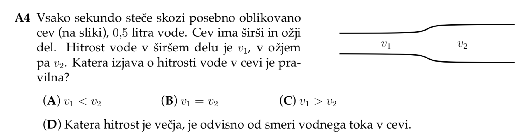 Takole so udeleženci 39. tekmovanja iz znanja fizike iz 8. razreda reševali naloge izbirnega tipa na šolskem tekmovanju: