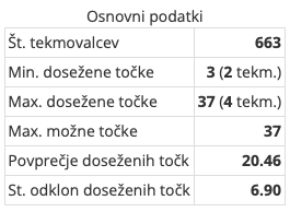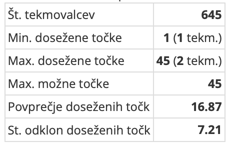 Na kratko, tule je enostavna (še neuradna, ampak tudi uradna ne bo zelo drugačna) statistika rezultatov z letošnjega področnega tekmovanja.